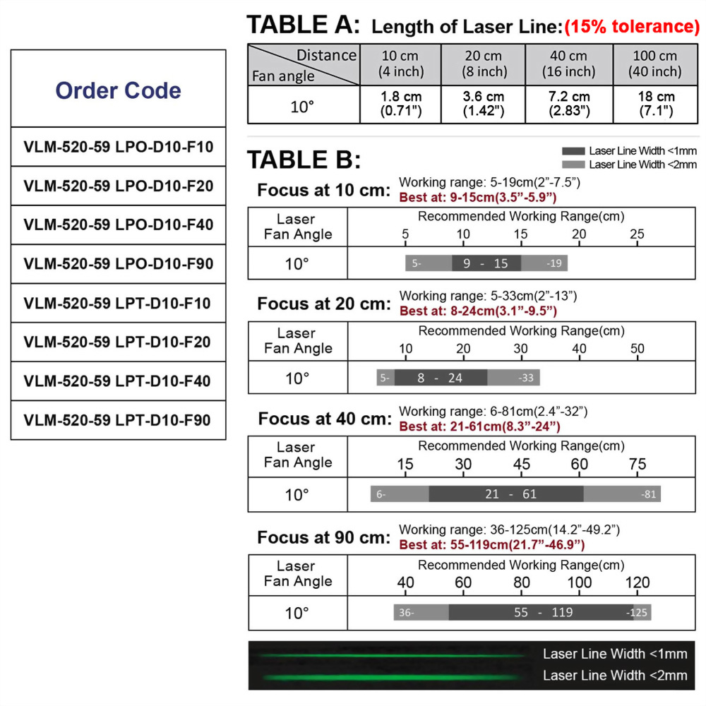 ** Operation temperature means within this temperature range, the laser spot/line will not be affected to change the spot size/line width. It can still work over this range, but the laser spot size or laser line width will be larger.