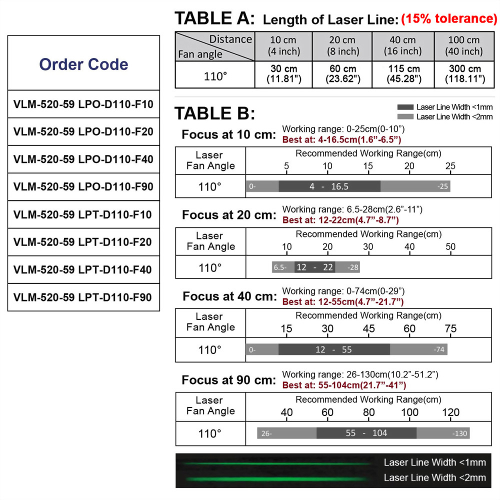 110° / Length of Laser Line as TABLE A (15% tolerance) |