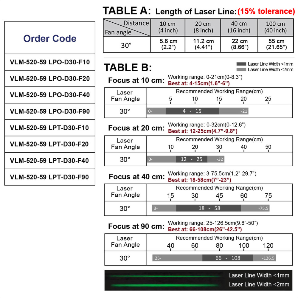 ** Operation temperature means within this temperature range, the laser spot/line will not be affected to change the spot size/line width. It can still work over this range, but the laser spot size or laser line width will be larger.