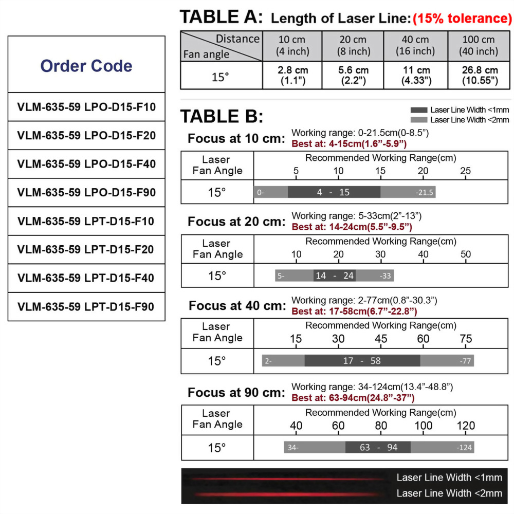 ** Operation temperature means within this temperature range, the laser spot/line will not be affected to change the spot size/line width. It can still work over this range, but the laser spot size or laser line width will be larger.