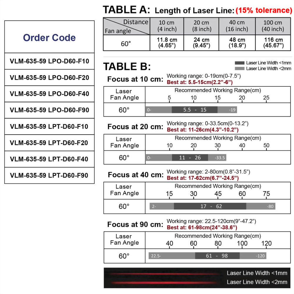 60° / Length of Laser Line as TABLE A (15% tolerance) |