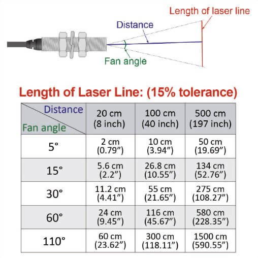 TABLE A: Laser Line Length Table: (15% tolerance)
