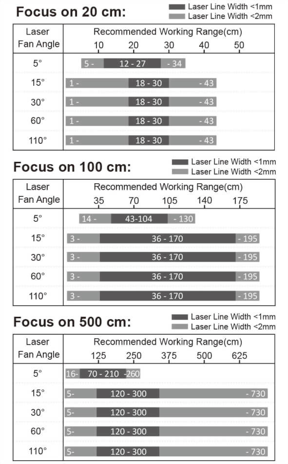 ** Operation temperature means within this temperature range, the laser spot/line will not be affected to change the spot size/line width. It can still work over this range, but the laser spot size or laser line width will be larger.